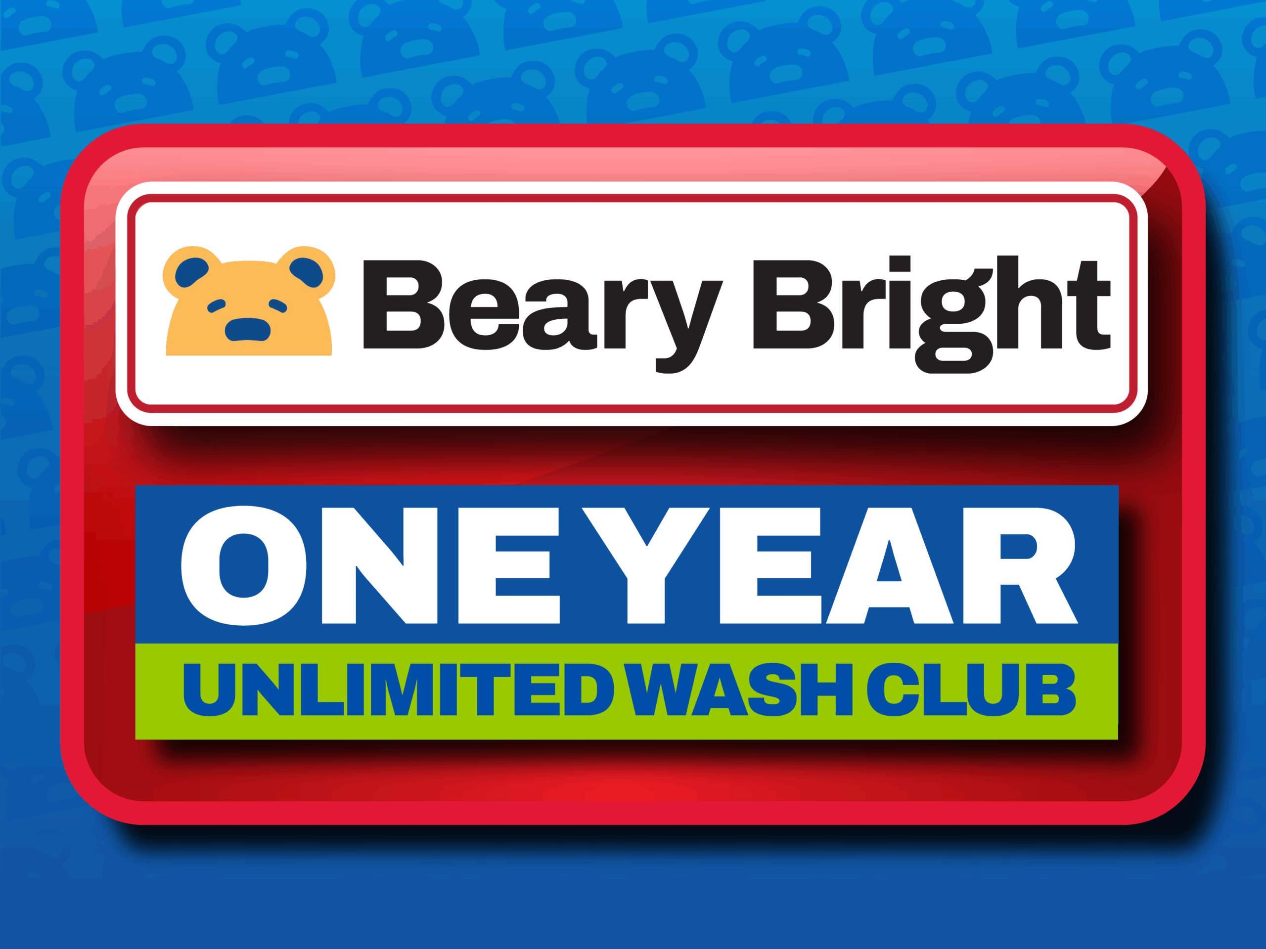 Keep your vehicle looking bright all year long with our Beary Bright Wash. This membership provides a powerful clean, a protective finish, and a consistent shine—perfect for drivers who want standout results with great value.